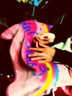 キキララの毛布がお気に入りなようです